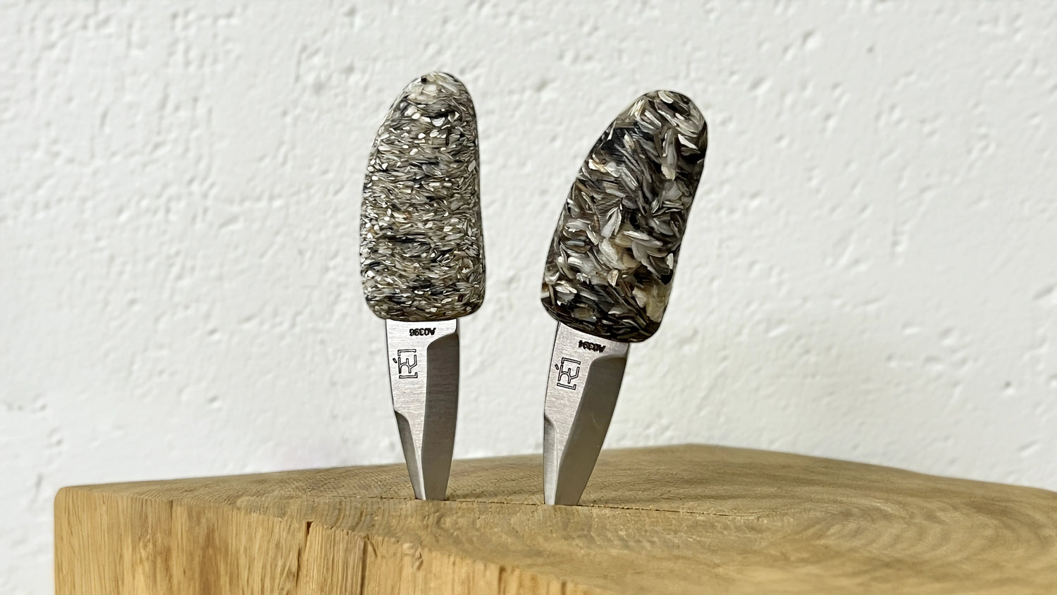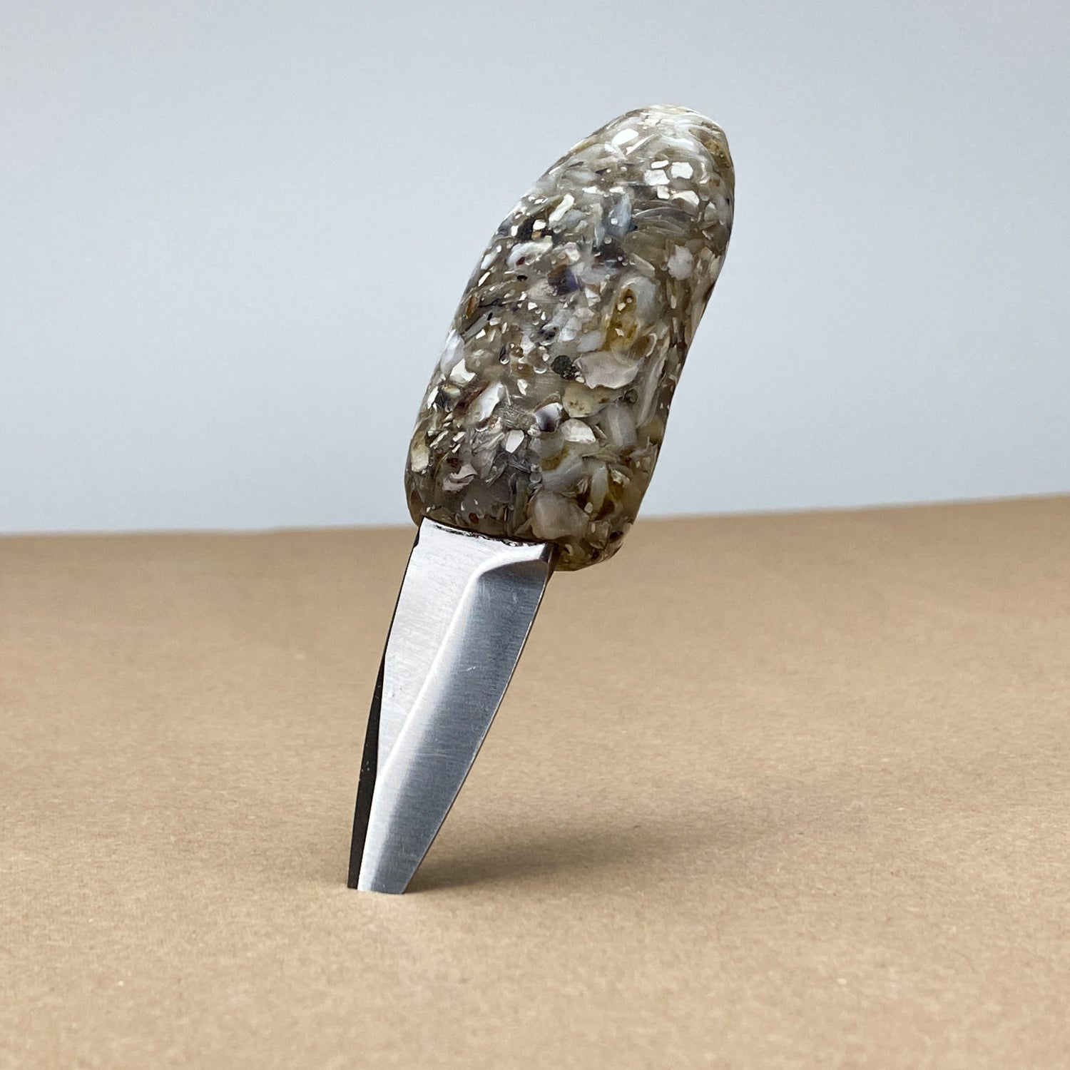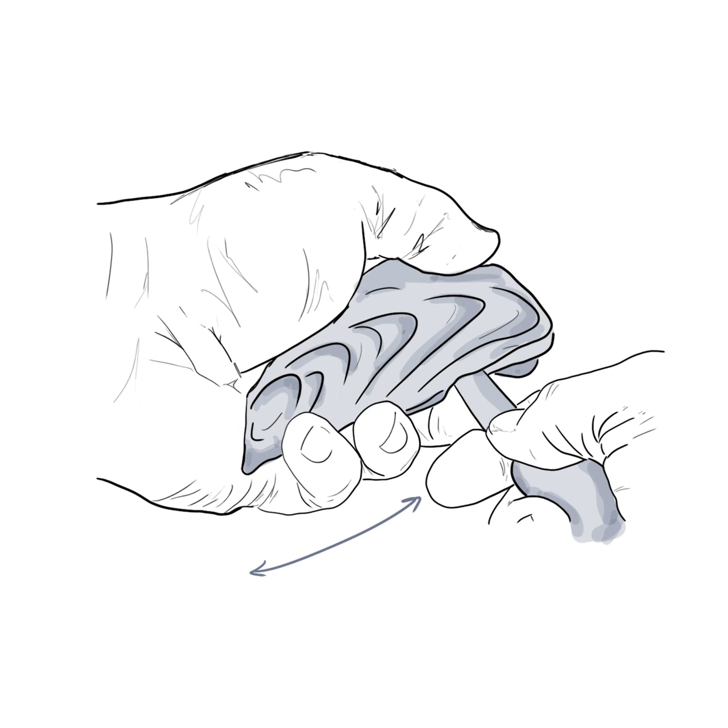 Pour ouvrir le coquillage, faites glisser la lame de gauche à droite pour ouvrir l'huitre. Le double tranchant de la lame permet de faire ce mouvement.