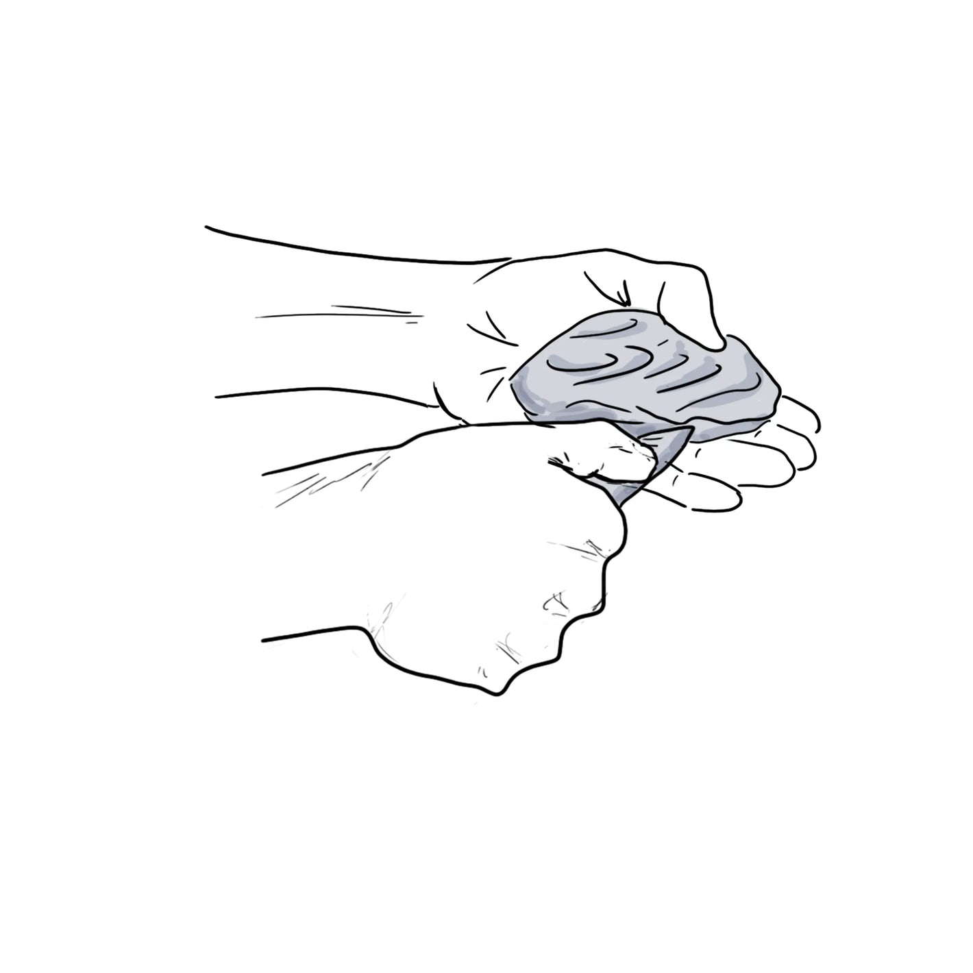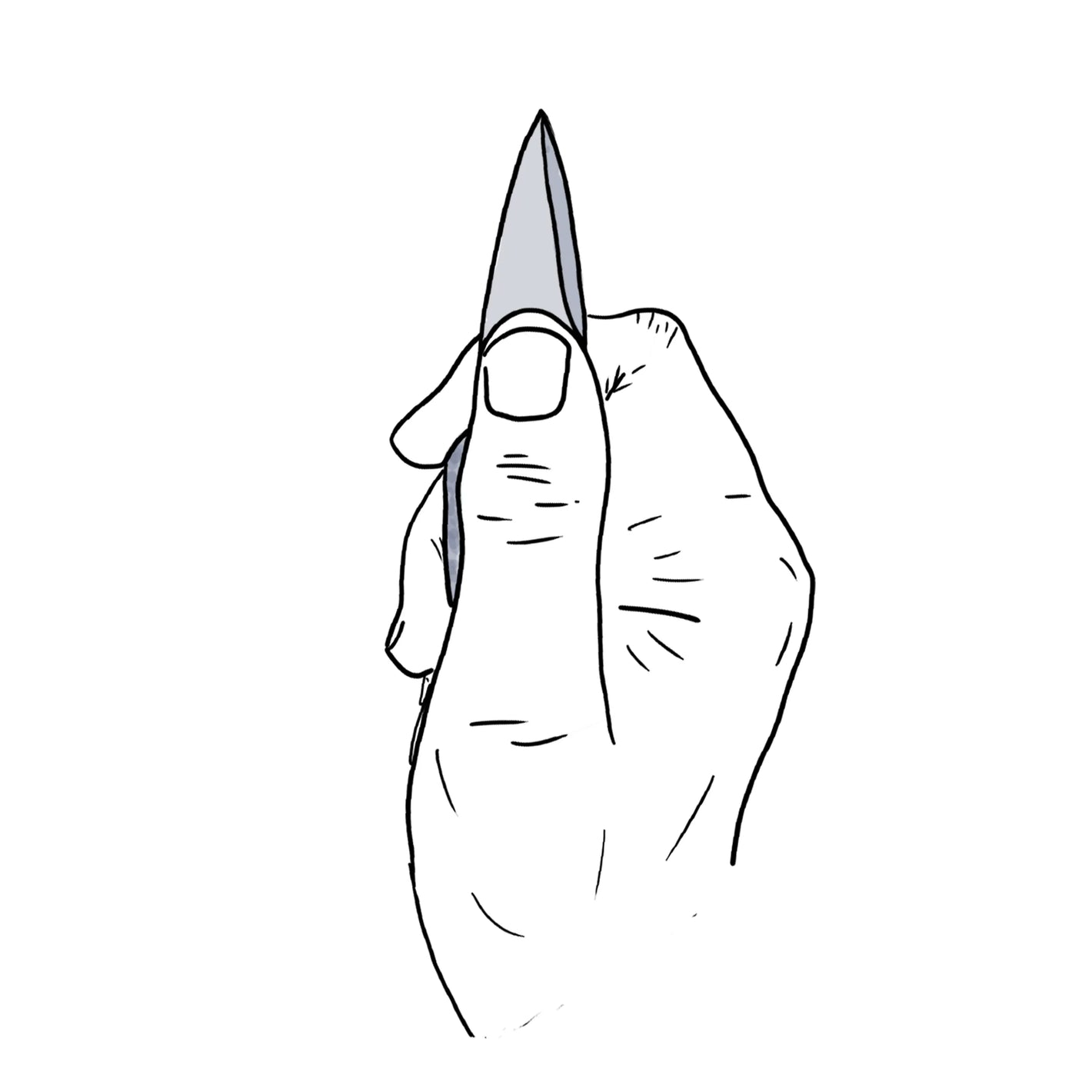 Prenez le couteau dans la main adaptée et saisissez fermement le manche. Placez votre index sur la butée du couteau prévue à cet effet et votre pouce sur la partie plate de la lame.