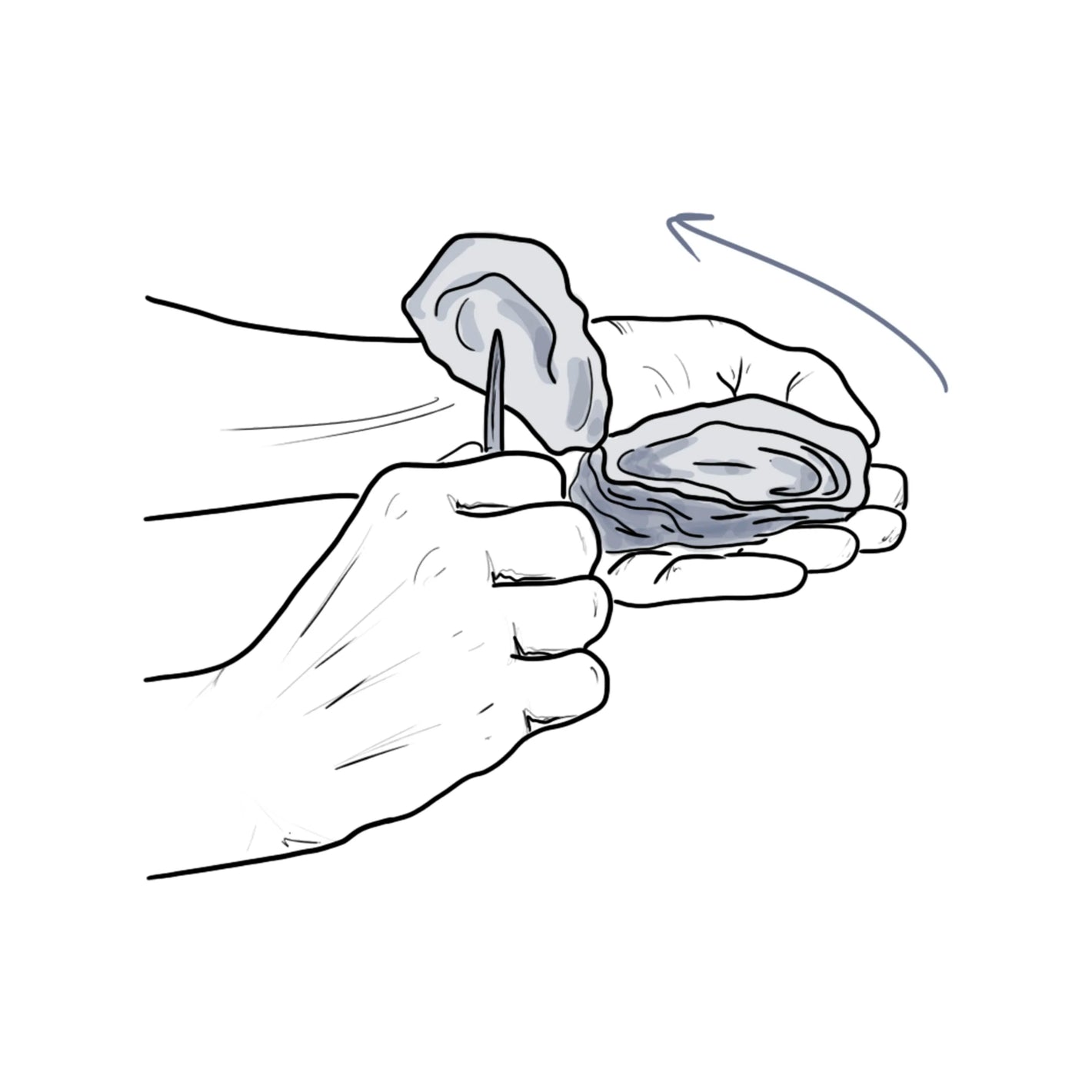 Pénétrer la lame du couteau à l'intérieur par le côté avec de petits mouvements d'oscillation (jamais par le talon du coquillage) et profitez de sa solidité pour effectuer un mouvement de levier facilement.