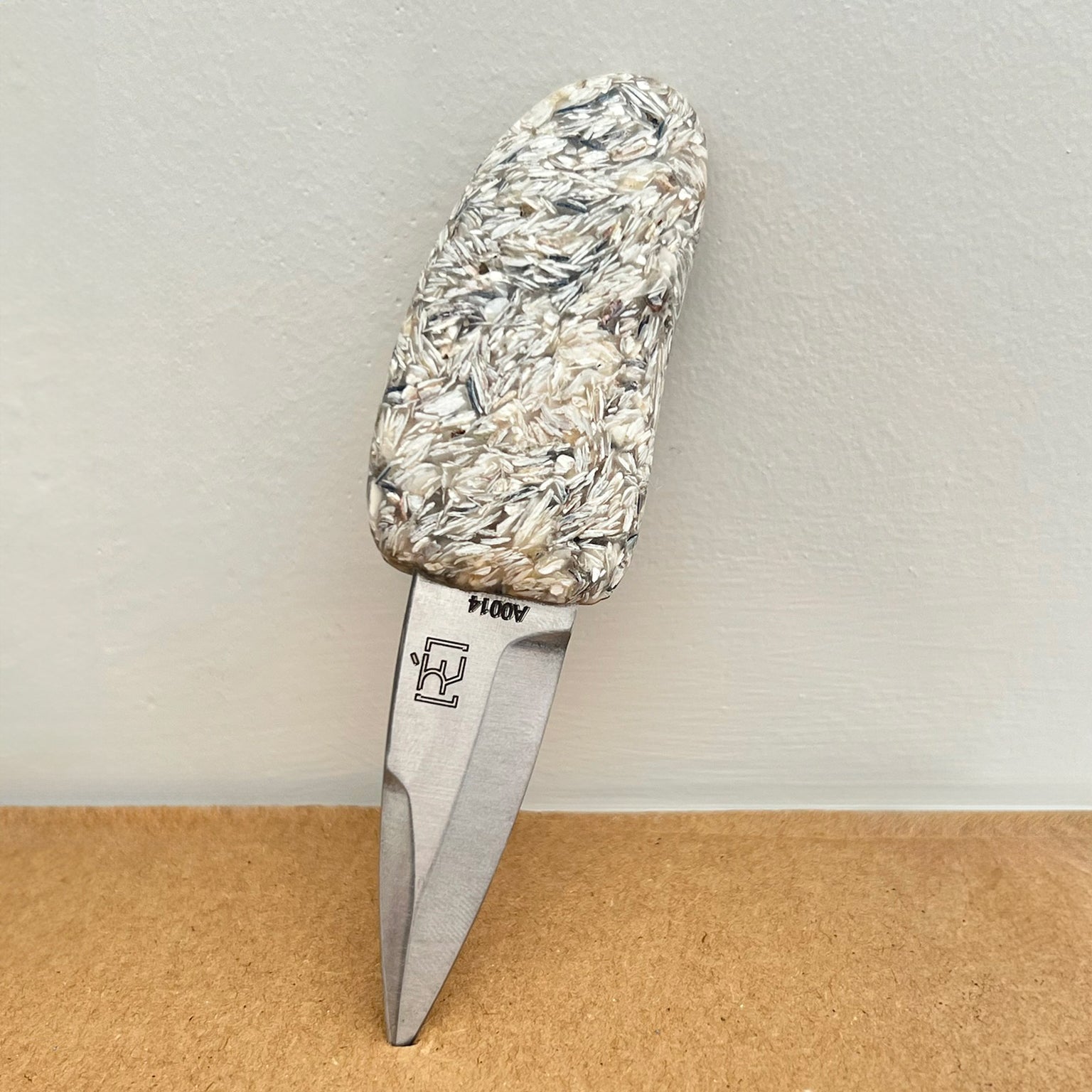 Couteau à huitre en coquille d'huitres broyées